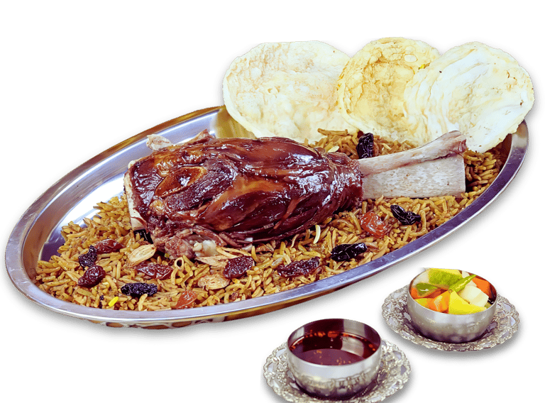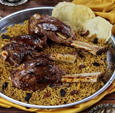 Our signature dish is a true celebration of flavors. Imagine a lamb shank that is slow-cooked to the perfect tenderness, combined with a rich Middle Eastern spice marinade that penetrates to the bone. Each portion is served with kebuli rice made from premium quality Basmati rice, which we have crafted with our secret Middle Eastern recipe to create a harmony of flavors that is sumptuous, authentic and unforgettable.