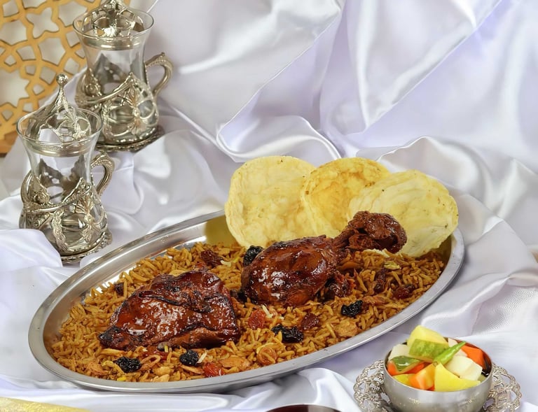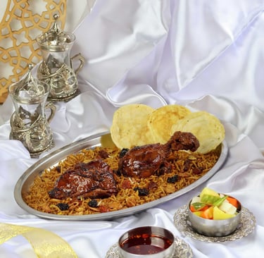 We are a Middle Eastern rice kebuli restaurant, featuring tender lamb and fragrant spices.