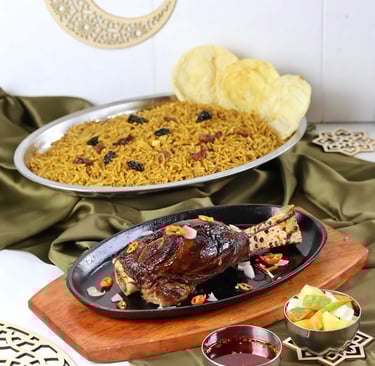 Our signature dish is a true celebration of flavors. Imagine a lamb shank that is slow-cooked to the perfect tenderness, combined with a rich Middle Eastern spice marinade that penetrates to the bone. Each portion is served with kebuli rice made from premium quality Basmati rice, which we have crafted with our secret Middle Eastern recipe to create a harmony of flavors that is sumptuous, authentic and unforgettable.