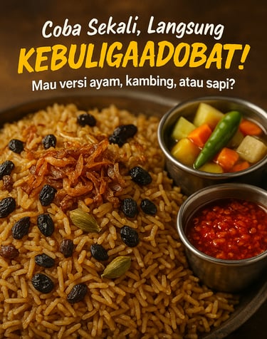 Born out of culinary passion in 2018, Kebuli Pentung Abu Ali embarked on a journey to redefine the authentic taste of Nasi Kebuli. From our dedicated kitchen, we present our iconic masterpiece: Nasi Kebuli Pentung Kambing.